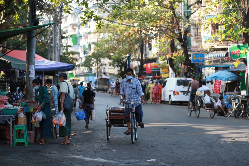 2月2日,一名人力三轮车夫经过缅甸仰光的一个街区。(新华社记者 张东强 摄)