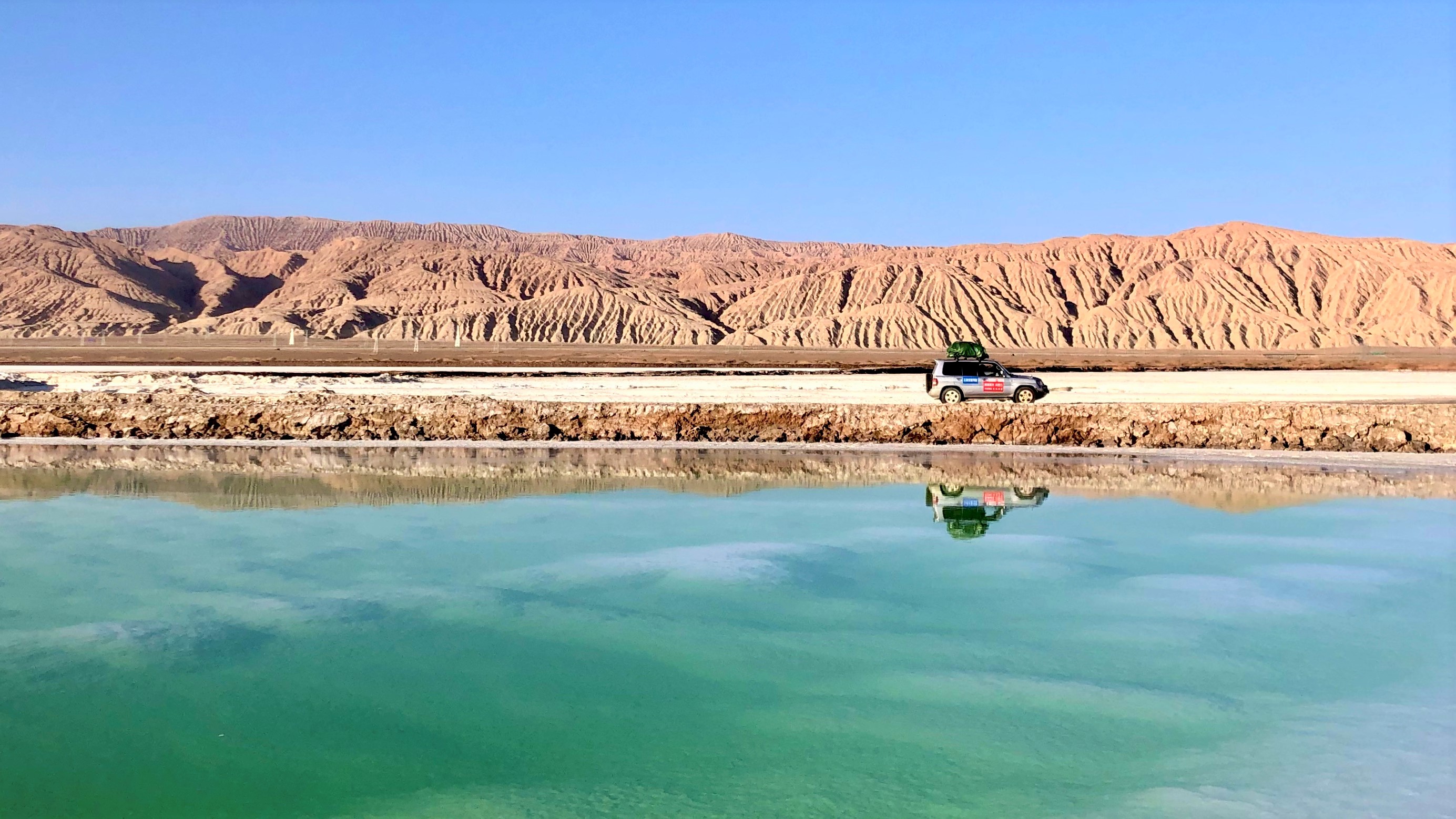 另一独特景点是西台吉乃湖。湖水一侧深蓝一侧翠绿,315国道穿湖而过直至地平线。航拍图片发朋友圈后,朋友们都以为是在某个公园。其实,美景就在路边,正是315魅力所在。