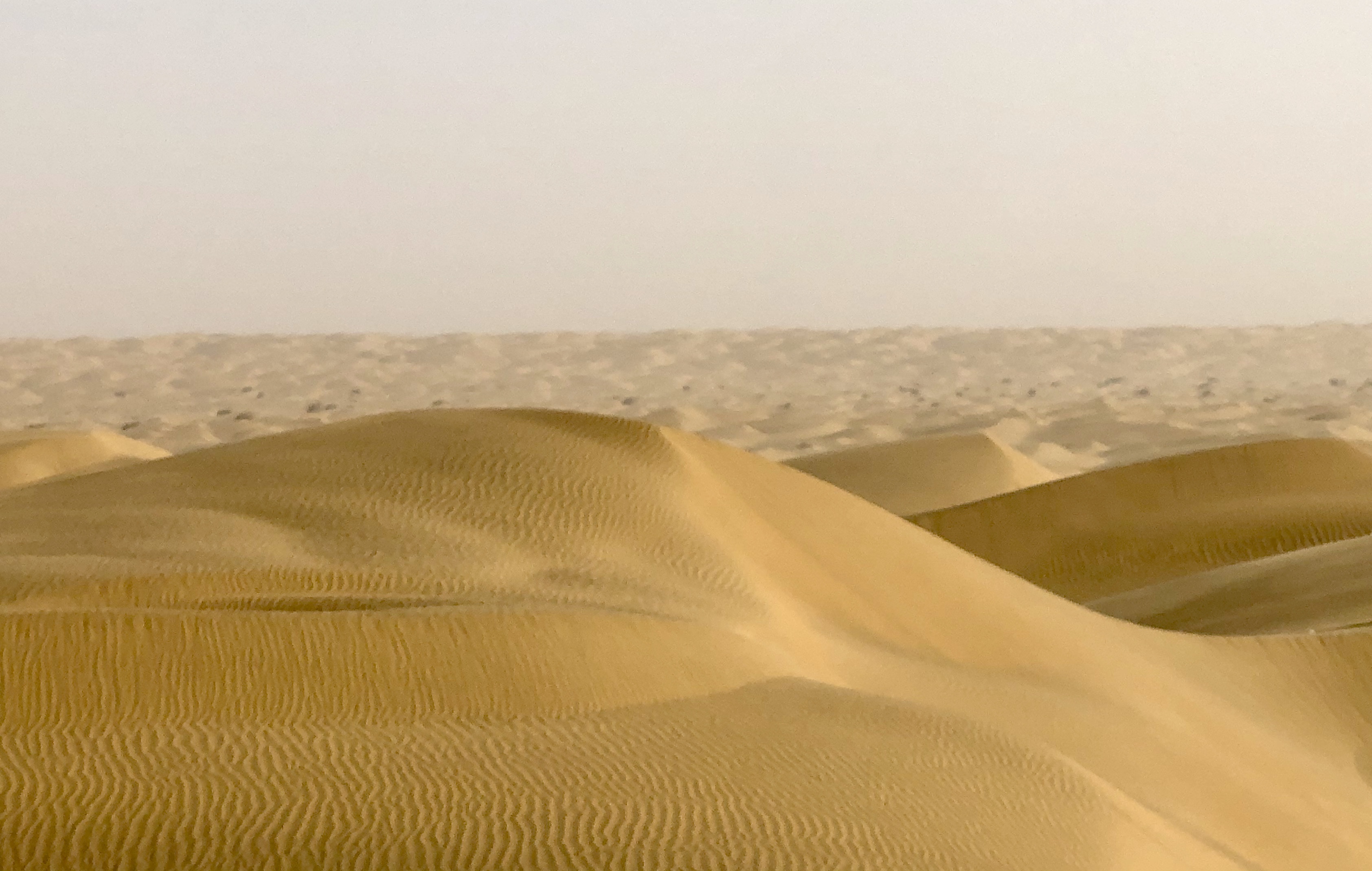 9月30日,我们从若羌向西将进入塔克拉玛干沙漠东部。到且末约200公里右转向北进入S233省道,这是一条真正意义的沙漠公路,直插塔克拉玛干腹地。再向西进入民丰到轮台的沙漠公路。