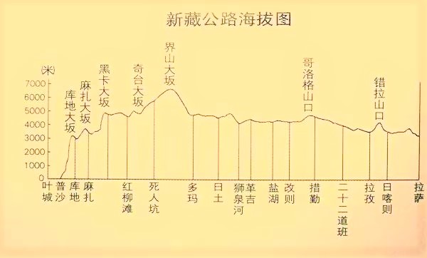 从叶城将进入喇啦昆仑山系,与新疆的沙漠、戈壁和绿洲相比,沿途不仅道路崎岖难行,海拔也从1000多米在100公里道路内骤升至3000多米,然后要持续在海拔4500米以上行驶,不少达坂(垭口)高程多在5000米以上。