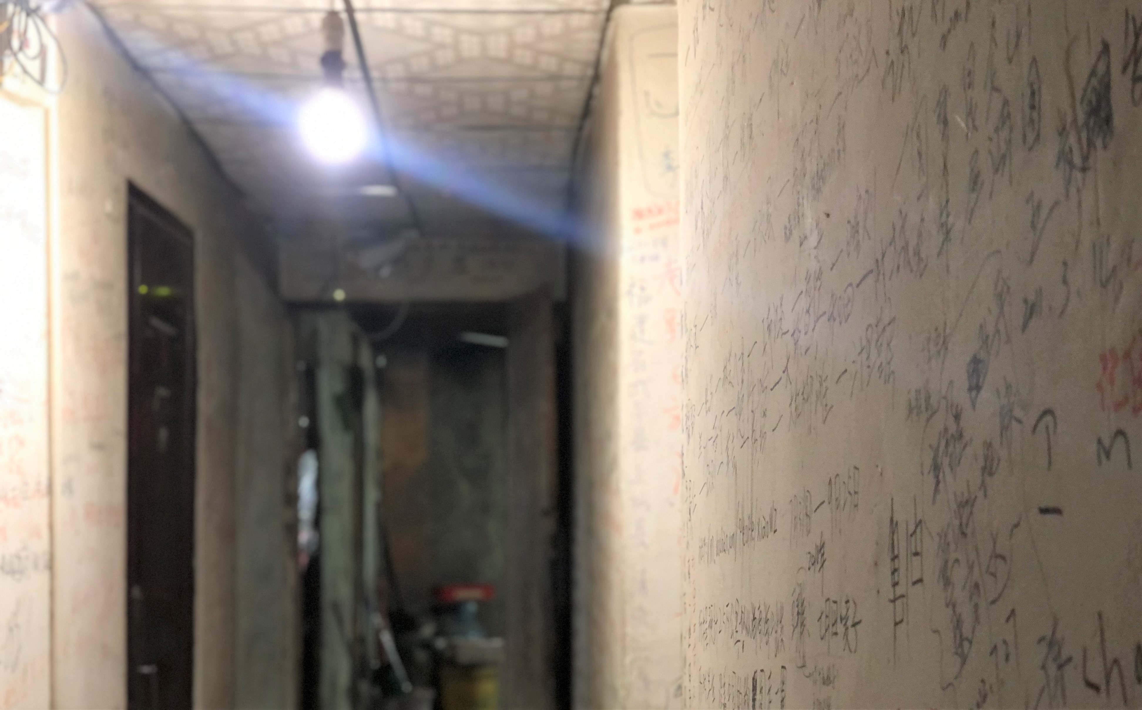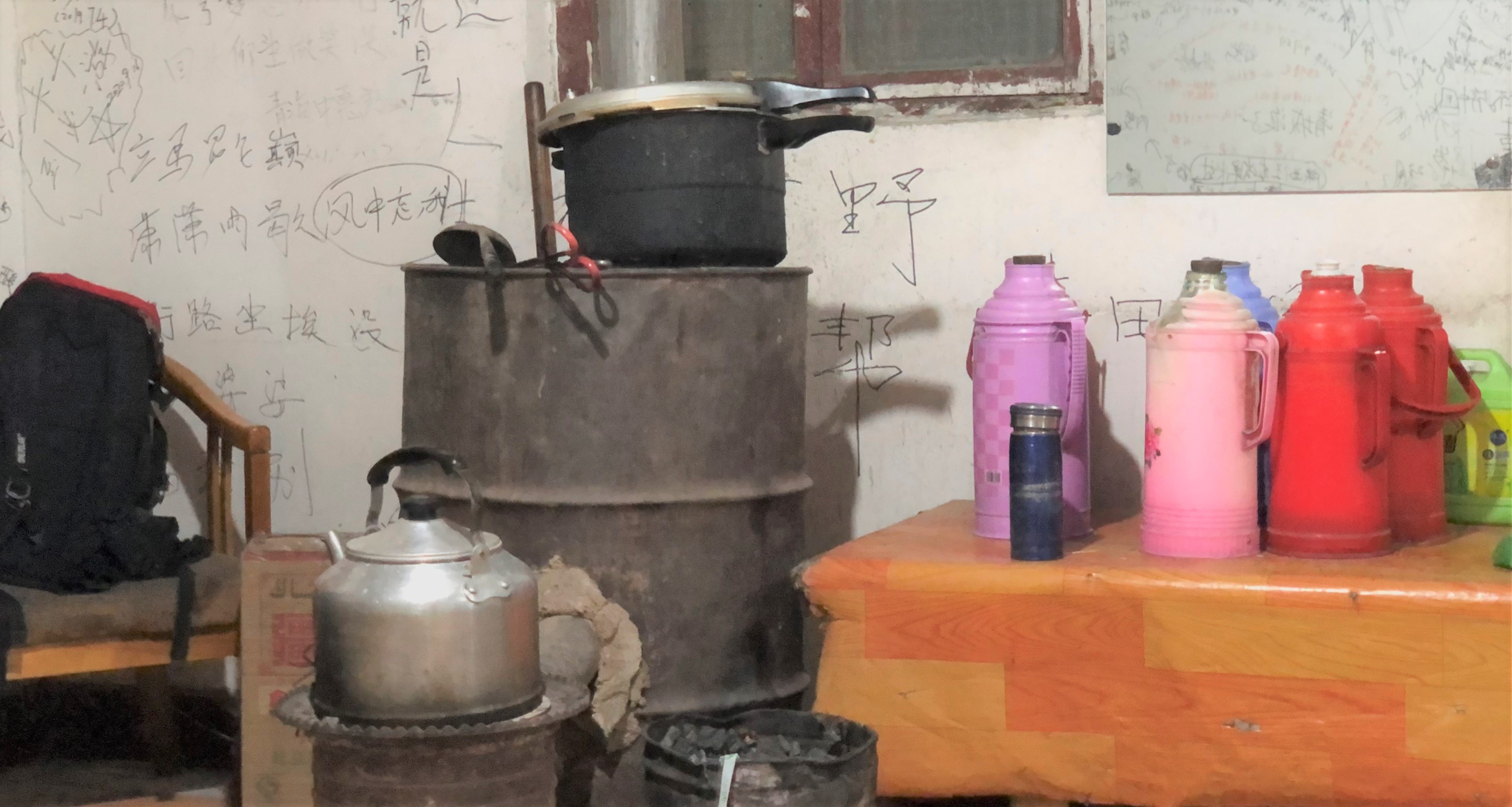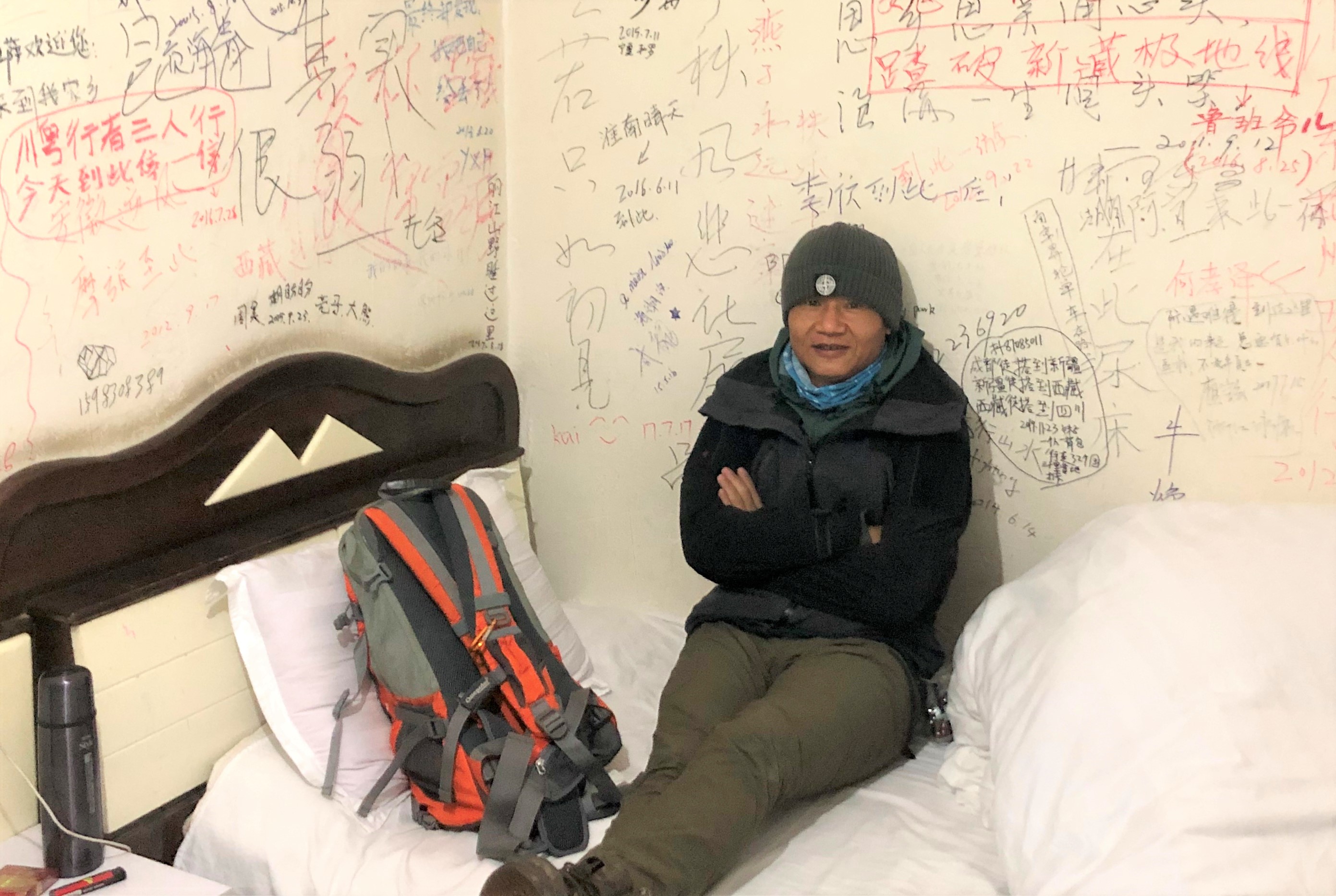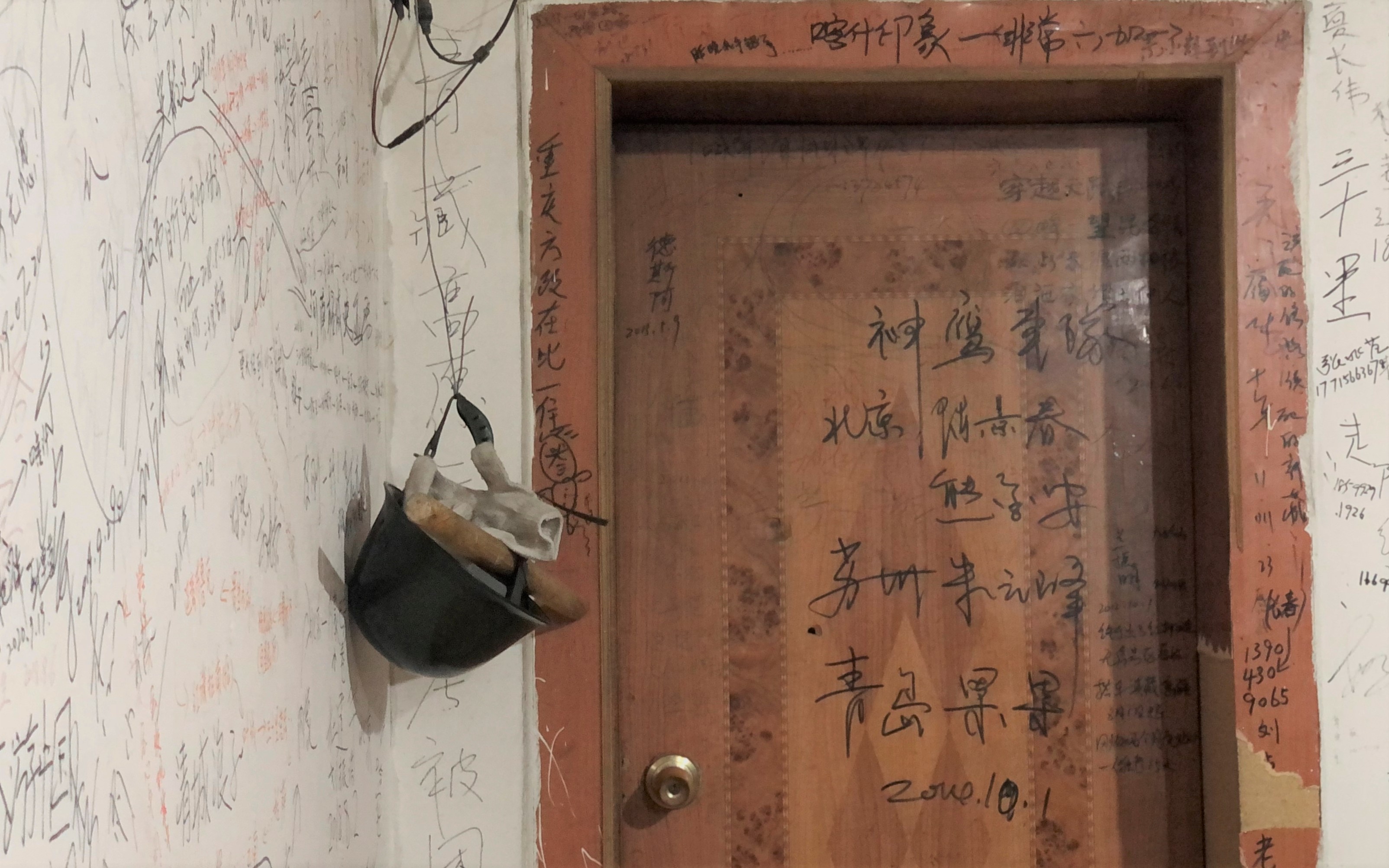 我们到达太晚,只能住在临时活动房搭建的餐厅兼旅馆。大通铺房间的墙面写满全国各地公路旅行者们的留言。