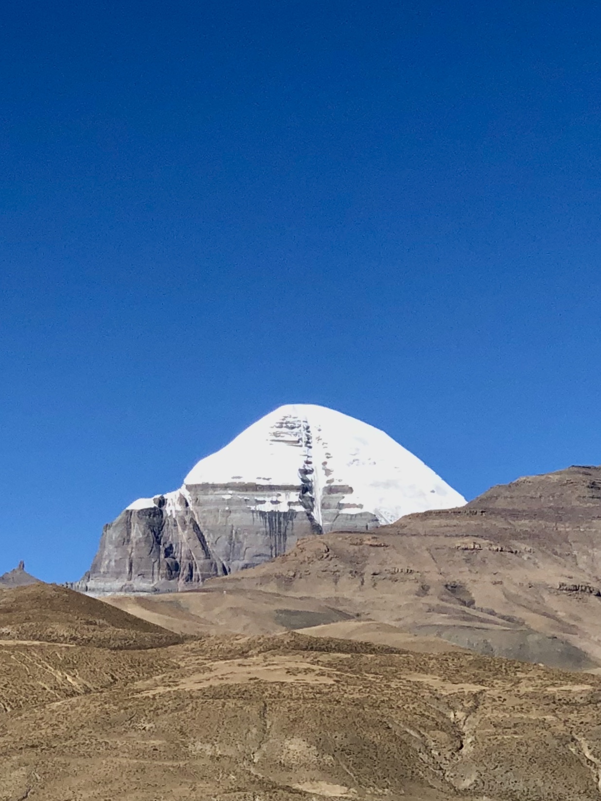 冈仁波齐的独特是那种你一眼就能认出的雪山,和这个星球上所有雪山不同,四壁对称宛如教冠的峰顶终年积雪。因此,无论从哪一个方向,你都能在很远就看到冈仁波齐孤傲的耸立在阿里的天空下。