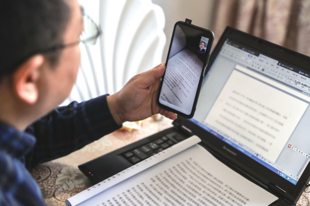2020年2月4日,辽宁省高级人民法院居家办公的法官通过视频与在单位的法官研讨案件(潘昱龙/摄)