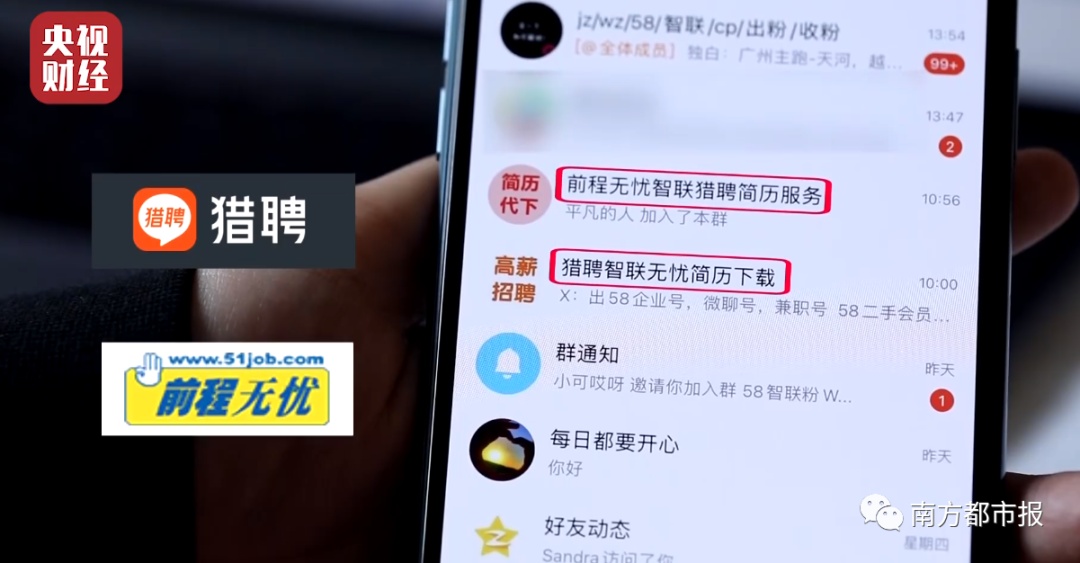 智联招聘声称拥有1.8亿用户,视用户信息安全与隐私保护为自己“生命线”。然而在一个名叫“58智联粉”的QQ群里,记者向一位买家支付7元,便买到了一份智联招聘上求职者简历。简历上求职者的姓名、性别、年龄、照片、联系方式、工作经历、教育经历等信息一应俱全。(相关报道链接:【3·15晚会】第二弹:智联招聘猎聘平台大量简历流向黑市,有人硬盘里存700万条)