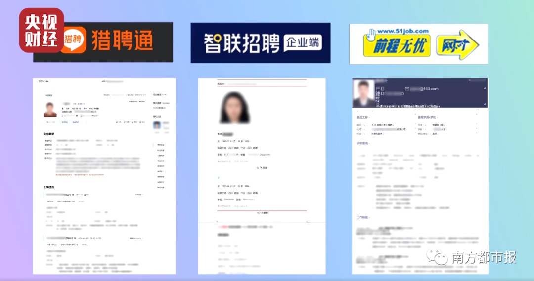记者发现,在智联招聘上,企业账户只要交钱办理会员,就可以不受数量限制下载包含姓名、电话及邮箱地址等关键信息的完整简历。