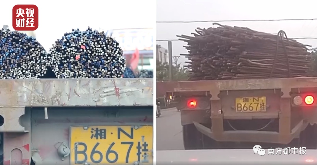 记者对其中一辆送废旧钢筋的货车进行了跟踪,发现这些废旧钢筋都被送进了揭阳一个隐蔽的工厂,半个小时后,出来的货车则装载满了崭新的钢筋。