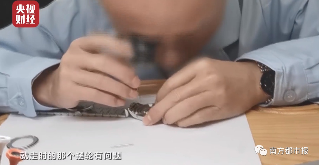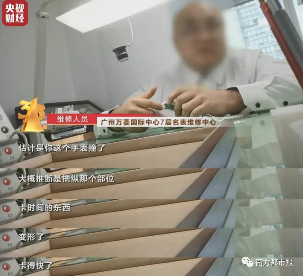 而在广州万菱国际中心7层名表维修中心,记者的遭遇更诡异:维修人员打开表盖,一个使劲的动作后,手表开始发出异响,真正产生了严重故障…