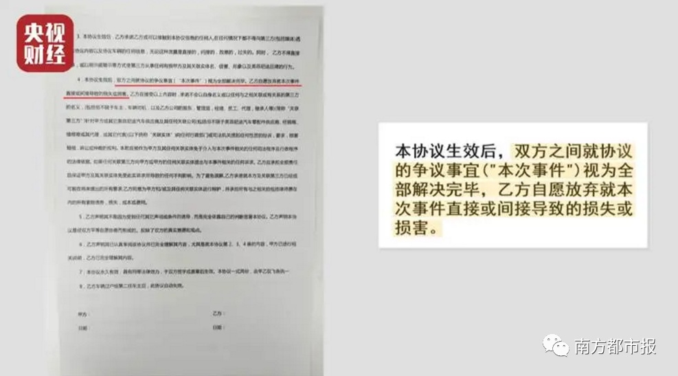 记者随同一位车主来到了4S店。工作人员说最多给这位车主延长保修期十年,但是要求车主和4S店签订一份协议,这份协议会对车主进行一些限制,工作人员说,签完以后就不要再去找媒体了,因为他们认为问题已经解决了。但这个协议并不针对所有车主,更多的车主还被蒙在鼓里。