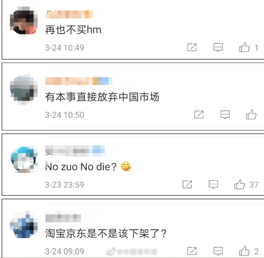 记者昨晚注意到,因为这份声明,不少网友在H&M品牌中国官方微博 @HM中国 的最新一条微博下留言“声讨”。