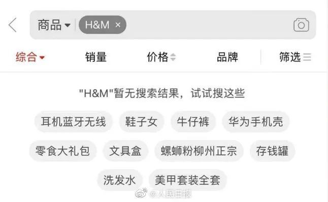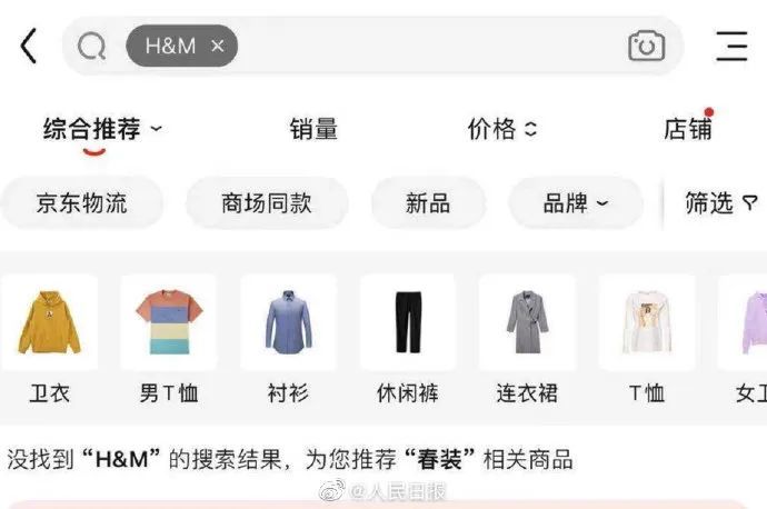 相关新闻→《下架!天猫、京东、拼多多搜索“H&M”已无商品展示》