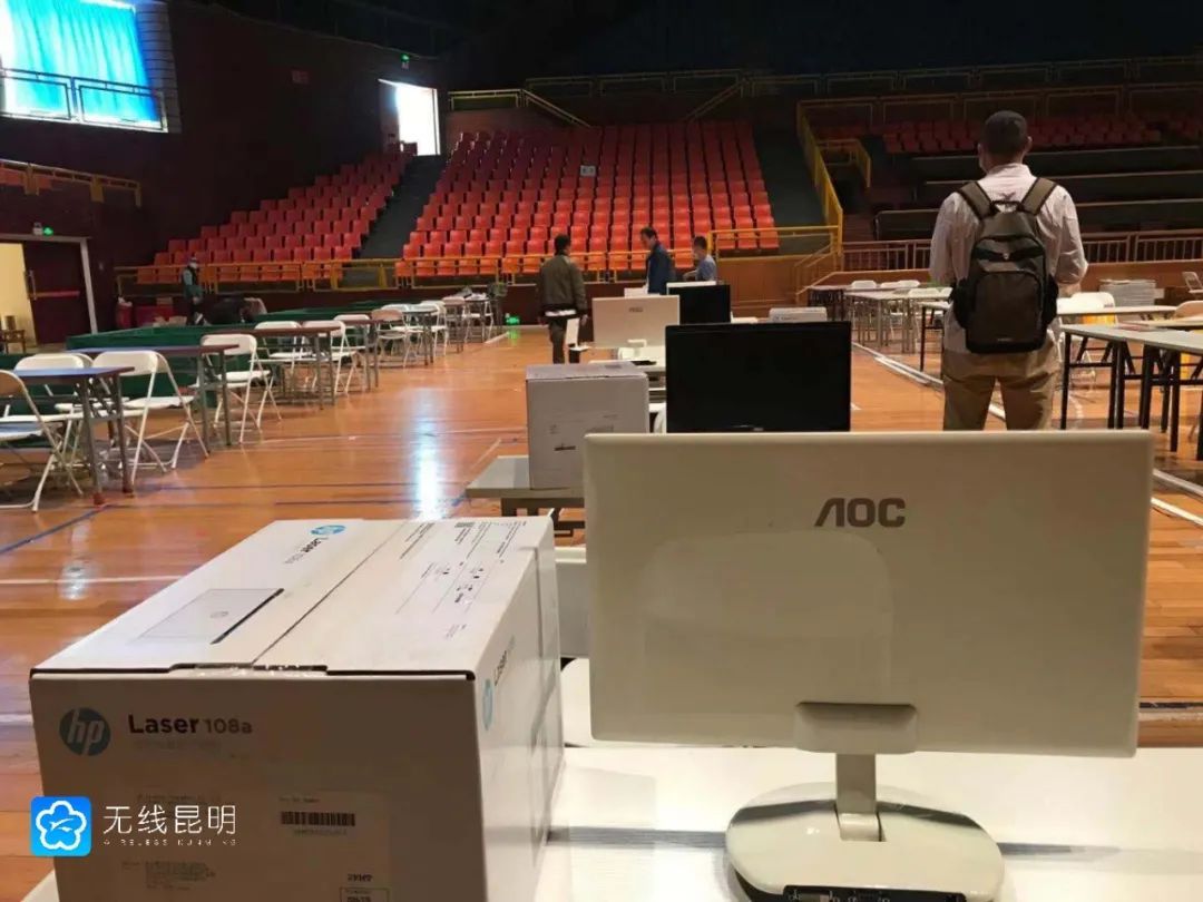 记者来到昆明市体育馆篮球馆内看到,场馆内被划分为等候区、预检区、接种区、留观区。工作人员正在接地线、安装电脑,一个疫苗接种方舱已经初具雏形。