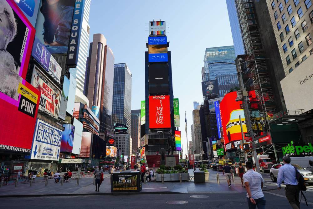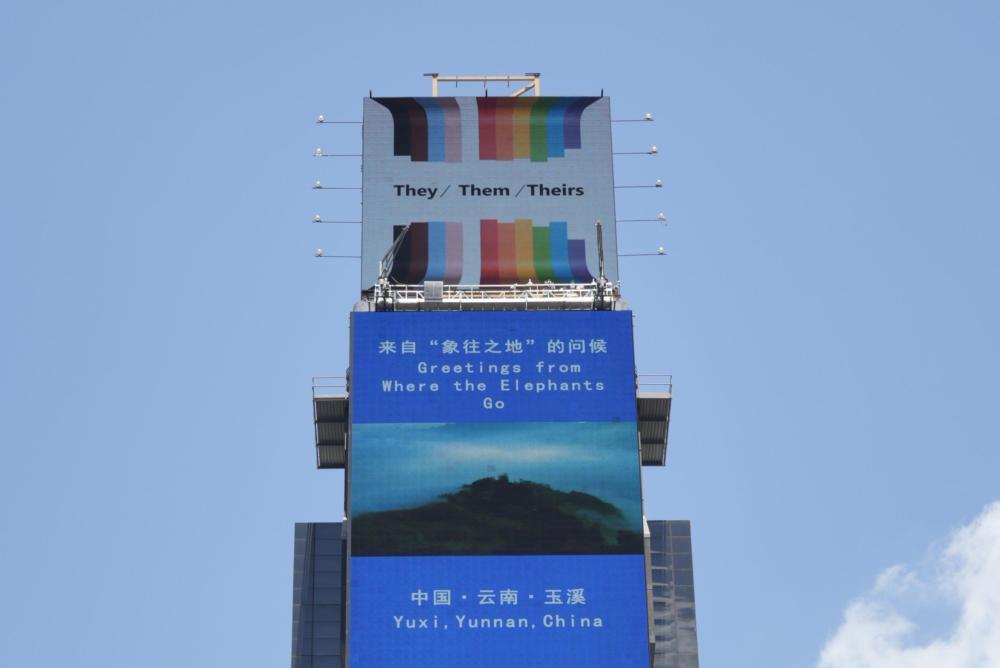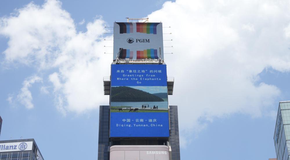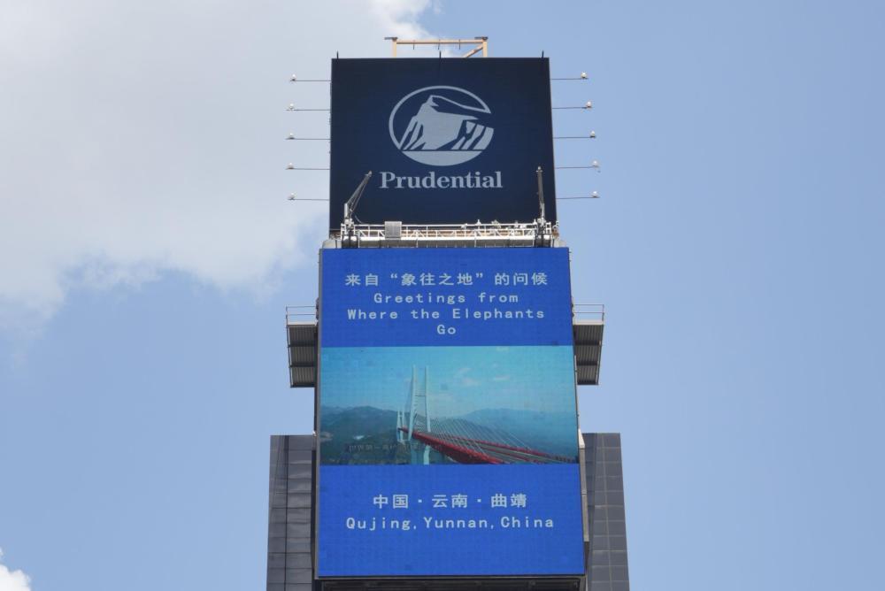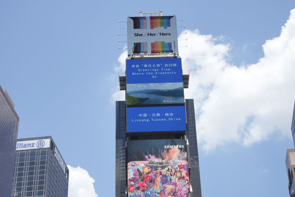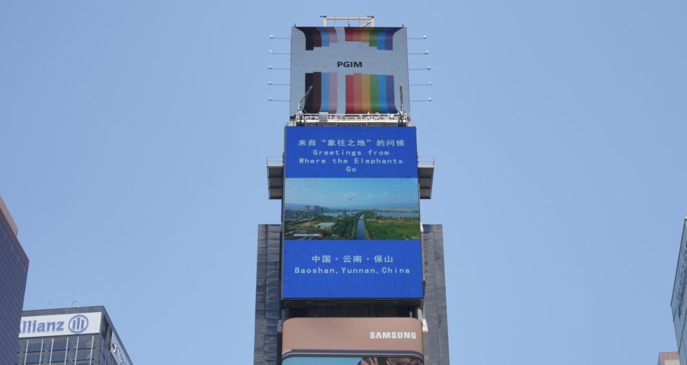 云南的城市形象宣传片集体亮相美国纽约时报广场“中国屏”。(7月1日摄)