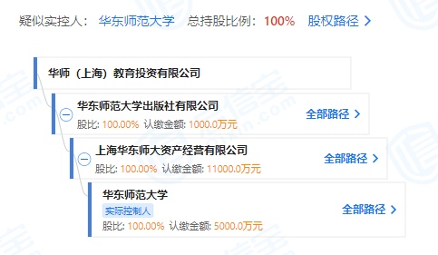 启信宝显示,华师大家教中心公众号认证公司为华师(上海)教育投资有限公司,该公司成立于2015年,注册资本1000万元人民币,由华东师范大学出版社有限公司100%持股。