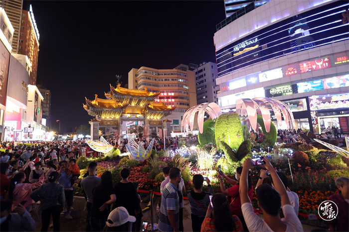 “您好,欢迎回家。”10月1日中午,在曲靖外滩文化旅游步行街的云南人家餐饮店,身着少数民族盛装的阿哥阿妹载歌载舞,迎来了第一批客人。