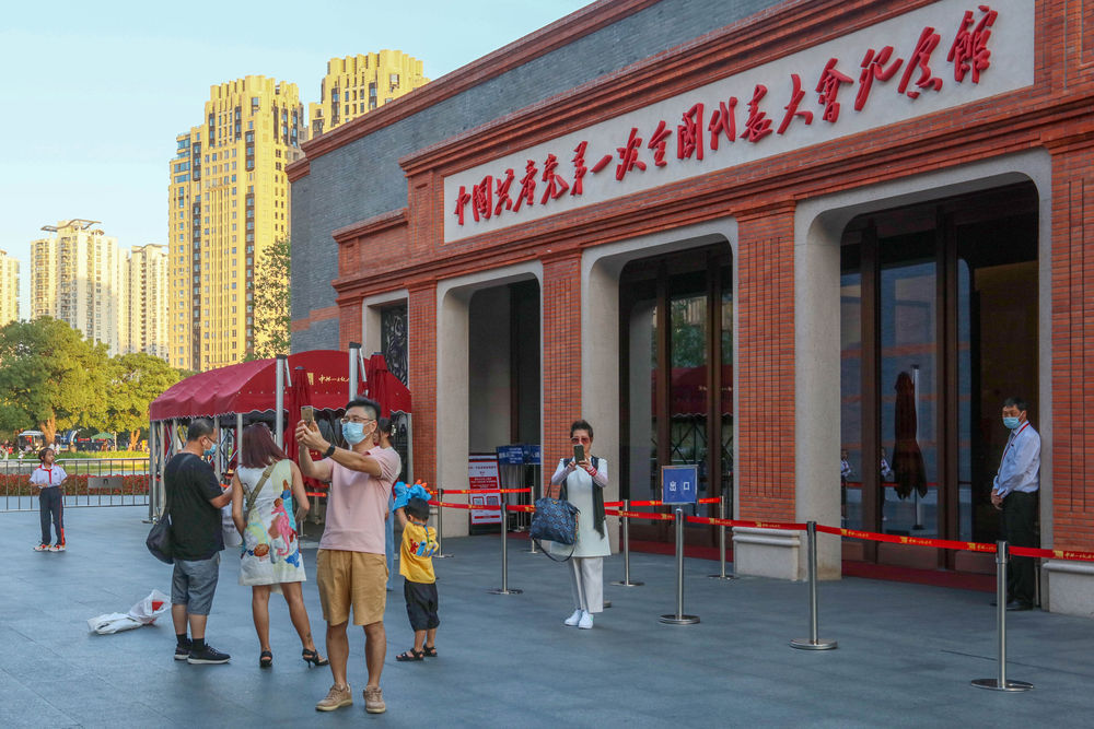 2021年10月3日,人们在中共一大纪念馆前拍照留影,新华社记者 王翔 摄