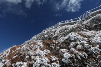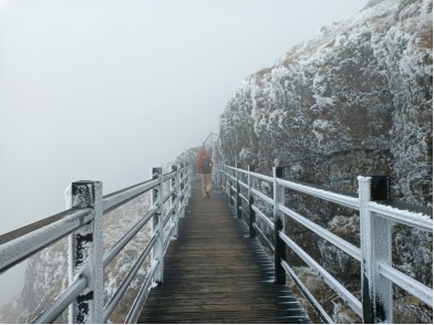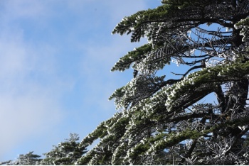 在雾凇的装扮下,轿子雪山披上了一层白纱,树木怪石都穿上了晶莹剔透的华服,到处都是银丝闪烁,好像仙子一般美丽动人,不得不惊叹大自然的鬼斧神工。