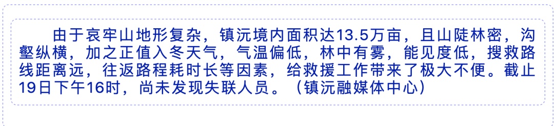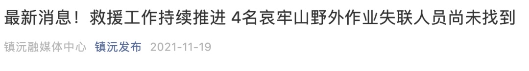中国地质调查局昆明自然资源综合调查中心4名队员,11月13日进入镇沅县者东镇樟盆村哀牢山后失联。截至11月20日上午,暂未搜索到失联人员。
