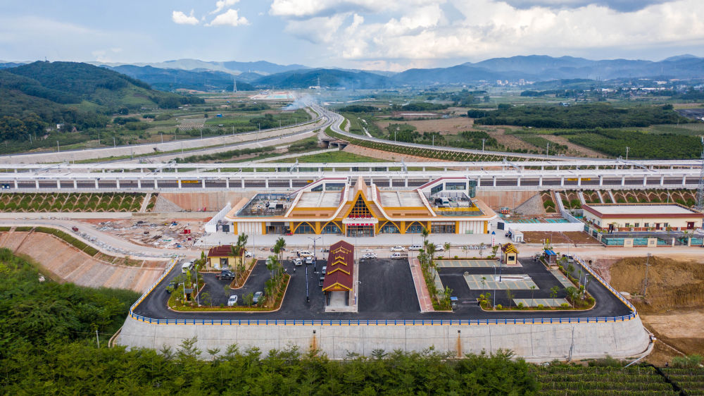 这是9月29日拍摄的野象谷车站一景(无人机照片)。 新华社记者 胡超 摄