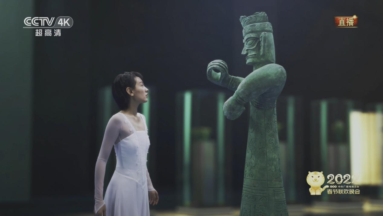 三星堆舞蹈《金面》登场,威严的青铜大立人像、神秘的青铜面具……舞蹈演绎诡谲瑰丽的古蜀故事,文物记录下中华民族前行的脚步,无声诉说厚重的历史,解答人类文明“何以中国”。