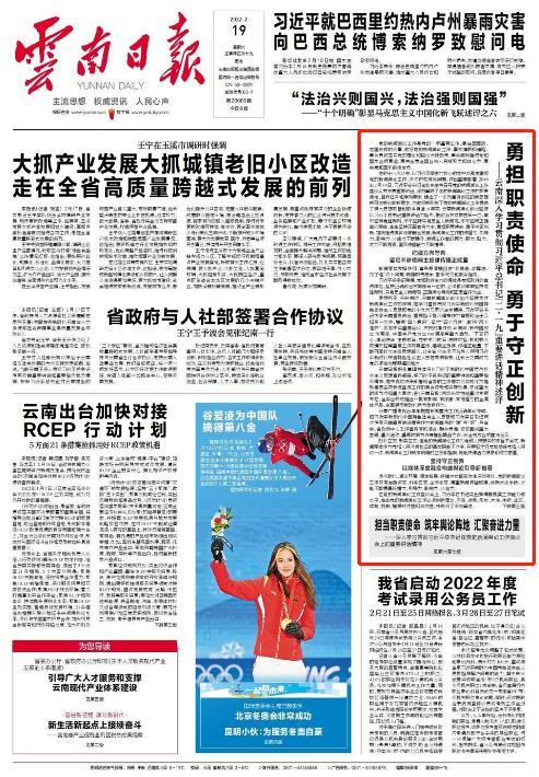 今天,是习近平总书记“二·一九”重要讲话六周年,云南日报头版显著位置刊发文章《勇担职责使命 勇于守正创新》,对云南深入学习贯彻习近平总书记“二·一九”重要讲话精神进行述评。