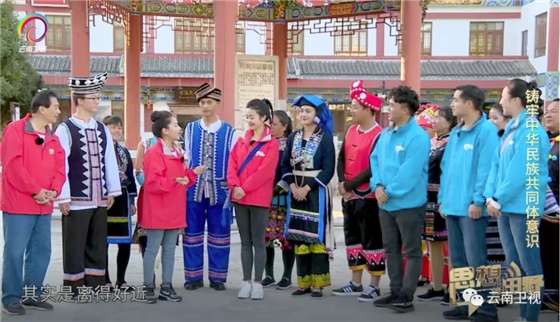 云南广播电视台构建“一云多屏”传播生态,占领新兴传播阵地。图为记者在民族团结誓词碑建碑70周年纪念会现场连线。