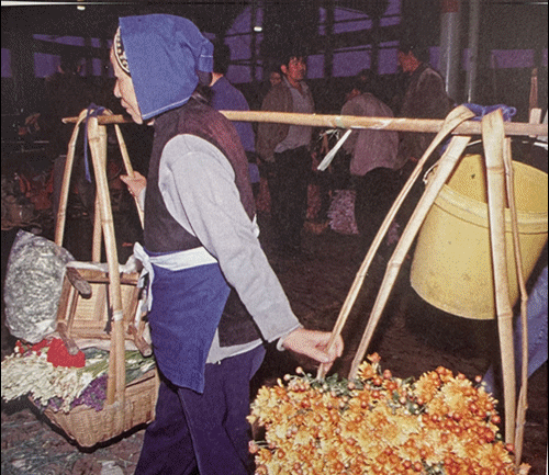 斗南村民华明昇原来种蔬菜,有一天朋友向他提议种花,说比种菜好一点,还带他去林木种苗站买了玉簪花回来种,30元一公斤,华明昇买了3公斤,一共90元钱,拿回来试种。三个月以后,花就可以卖了,他用自行车驮着去昆明城里卖,5毛钱一支的花,最后全部卖了150多元,比起种菜的效益要好多了。从此他就觉得种花比种菜好。