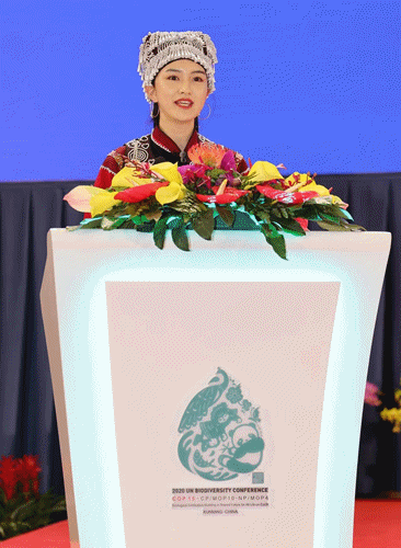 去年,在COP15大会上,哈尼族青年施晓悦身穿盛装,作为少数民族青年代表登上了大会发言台,向全世界介绍她的民族、她的家乡,讲了哈尼族全手工的服饰文化,悠久的梯田文化,家乡阿者科村的变化等等,讲述哈尼族与各族同胞一起为团结进步发展、生态文化建设所做出的努力。