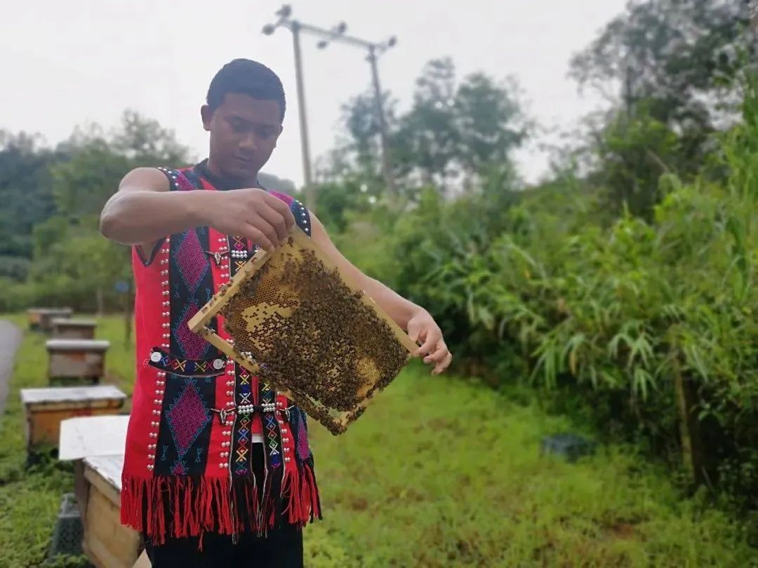 今天的佤族新青年,怀揣着改变命运的梦想,搭上互联网的“快车”。通过直播带货、线上销售等,将家乡的原生态产品、少数民族文化分享给世界。今年27岁的佤族青年岩枪,作为企业的养蜂能手,一个人负责蜂场的300多个蜂箱,蜂蜜稳产又高产。作为直播界的新晋“网红”,他用网络传播自己的工作,成了直播“带货”的好手。