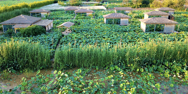 通过土地流转、招商引资,积极发展庄园经济;通过村庄改造、自主经营或出租,努力完善旅游服务业;通过集体建设用地开发,盘活运营,不断壮大集体经济……近年来,马房村牢固树立“绿水青山就是金山银山”理念,按照“绿色低碳、保护治理、高质量发展”思路,加大农业产业结构调整力度,建设以荷藕种植为主的生产性湿地,积极探索民宿客栈、餐饮为主,田园观光、休闲体验为辅的农旅融合新路子。