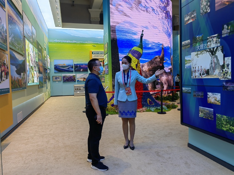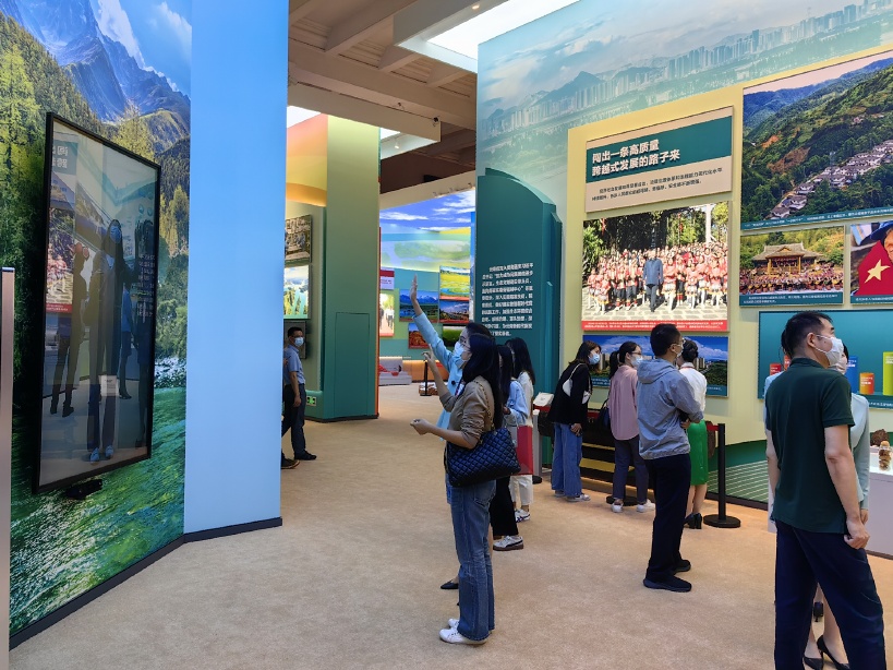 位于展厅中间位置的照片流,集中展示云南十年来推进经济高质量跨越式发展,努力成为我国民族团结进步示范区、生态文明建设排头兵、面向南亚东南亚辐射中心等方面的成就。展项内置137张精美图片,让图片如水流般缓缓流下,观众可以点击任意图片放大,感受云南之美。