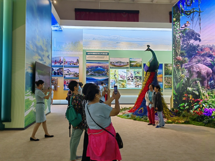 “奋进新时代”主题成就展目前正在北京展览馆举行,位于五号馆的云南单元,自开展以来就深受参观者的青睐。除了丰富精美的图片展板、独具特点的实物展品,AI民族换装、裸眼3D视频《大象迎宾》等特色展项也让云南单元大放异彩。