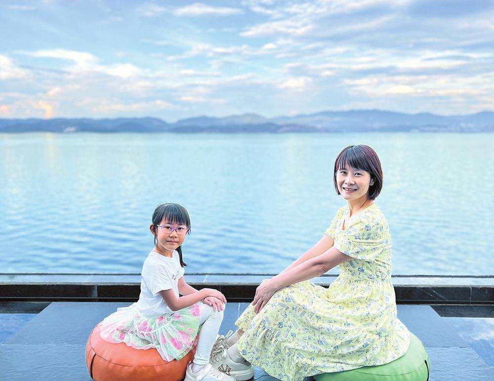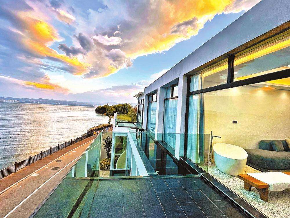 9月20日清晨,住在下末南村逅海·朴语海景客栈的两位闺蜜被湖水拍打礁石的声音叫醒,打开电动窗帘,一缕阳光微微透过窗帘照进房间,洱海美景尽收眼底。