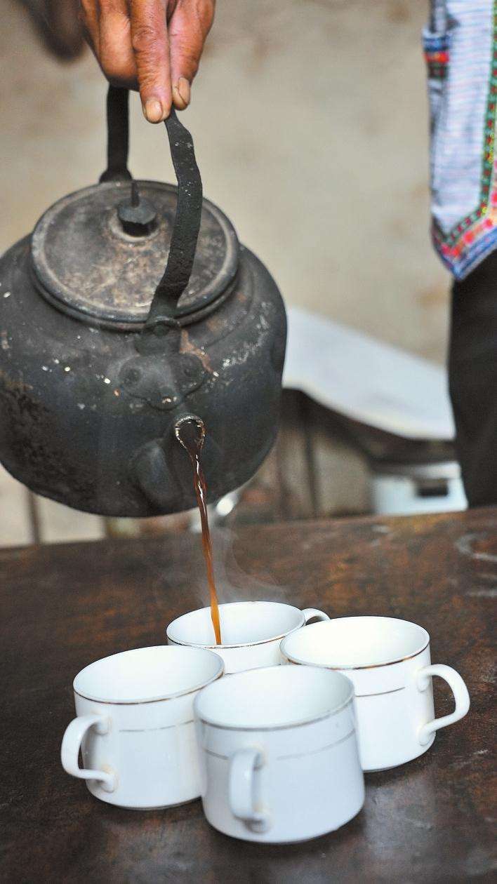 “一百多年来,朱苦拉村每一户人家,都会煮、喝这样的咖啡。来,先闻一闻,再喝。”杞凤华手提黑铁壶,对咖啡的喜爱之情在他沧桑的笑脸上荡漾开来。