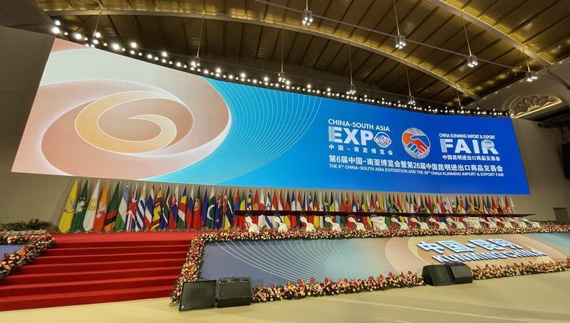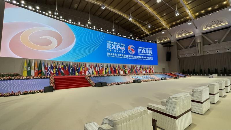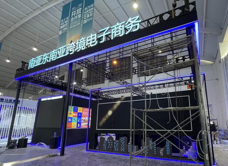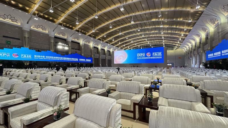 11月17日,南博会场馆正紧锣密鼓布展。