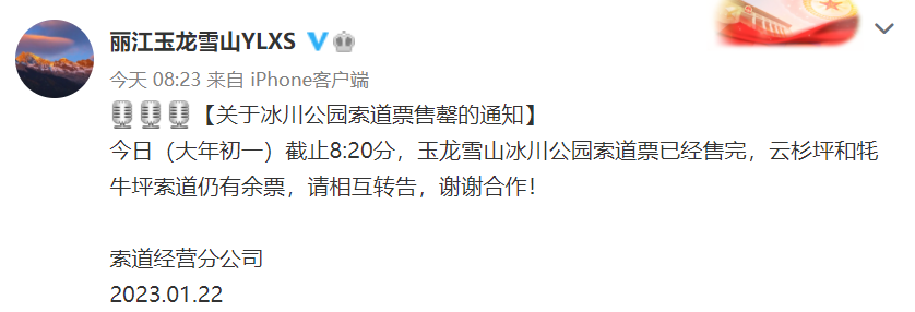 来源 都市时报、央视财经、@丽江玉龙雪山YLXS、宾川鸡足山旅游投资开发有限公司