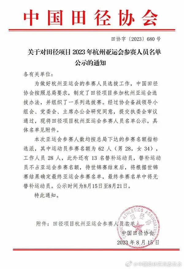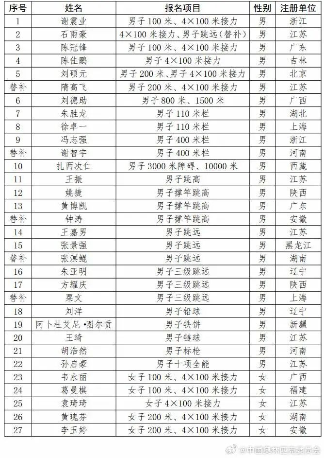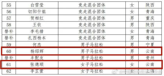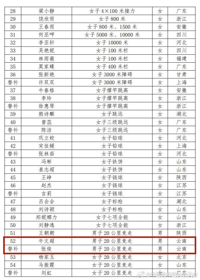中国田径队公布亚运会名单,云南4位选手名列其中→