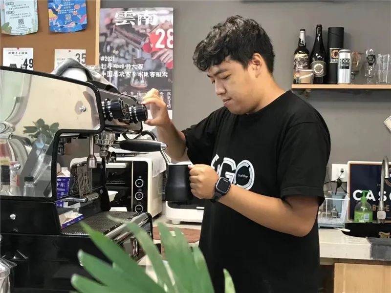 一开始只有一个孩子报名,符欣和另外两名咖啡师三对一地教他。