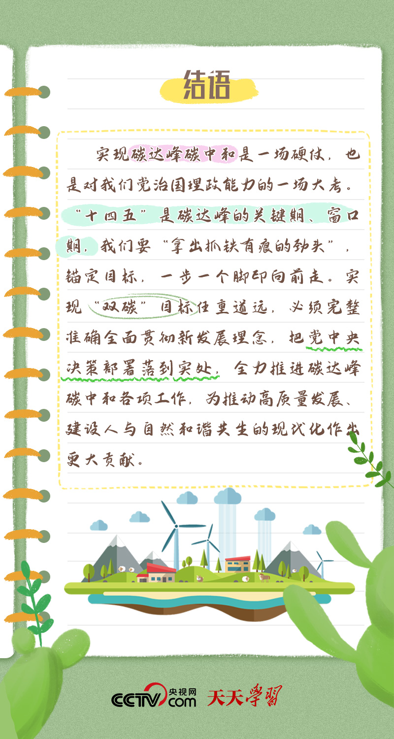 天天学习 今年全国两会,习近平总书记在政协联组会上,对“双碳”工作作出最新部署。总书记强调:“全面准确落实精准治污、科学治污、依法治污方针,推动经济社会发展绿色化、低碳化,加强资源节约集约循环利用,拓展生态产品价值实现路径,积极稳妥推进碳达峰碳中和,为高质量发展注入新动能、塑造新优势。”