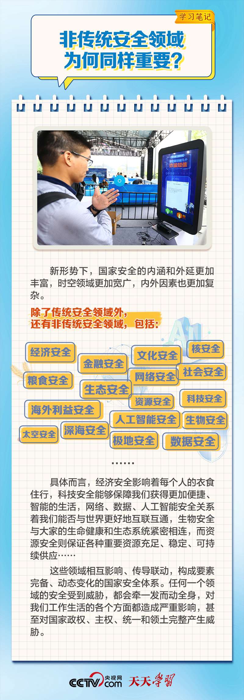 | 天天学习 | 提起国家安全,很多人误以为是遥远的“谍战片”。其实,国家安全涉及领域众多,与每个人都息息相关。