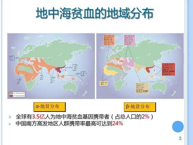 目前,全世界已报道过的会导致地贫产生的基因模组达200余种。全球约1.5%的人口,接近1亿人携带有地贫基因。我国各地报道的地中海贫血基因缺陷率为2.5%到20%,两广、云南、海南、贵州、四川、重庆、福建、江西等南部省市是该病的高发区。