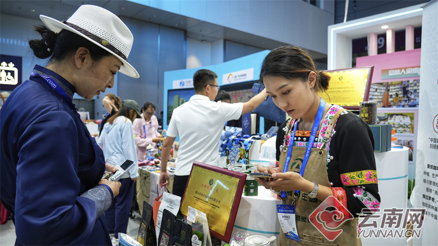 相知无远近,万里尚为邻。在“共建共享”版块,展区借助数字长卷多媒体,展示云南大美风光,邀请观众拍照、分享自己与云南的故事,领取云南展区纪念品。同时设置了展销区,增加云南展区的人性化及体验感,促进买家与云南参展企业之间的相互合作。