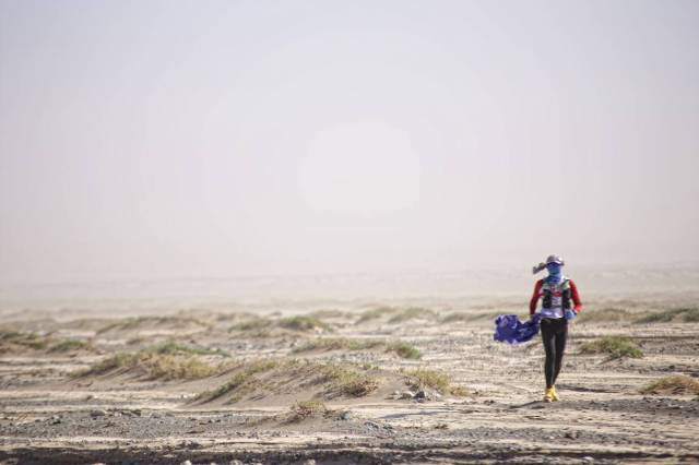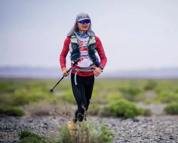 在沙漠行走,被太阳暴晒特别容易出汗,出汗后电解质丢失,本就容易肌肉抽筋。因为害怕在竞赛过程中发生意外,佘少辉背了超过组委会规定容量30升的背包和远超所需的水,这让小腿抽筋来得更快也更猛烈,几次直接栽倒在一望无际的黄沙里,再加上中途暴晒,和未体验过的风沙不断撞击脸颊的刺痛,一路上他常有放弃的念头。