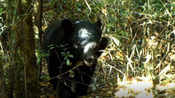 红外相机拍摄到的亚洲黑熊。截至2023年,在红外相机数据整理分析中,260台红外相机中已有50余个点位拍摄到亚洲黑熊影像资料,证明了保护区内亚洲黑熊有一定数量分布。哀牢山自然保护区楚雄管护局 提供