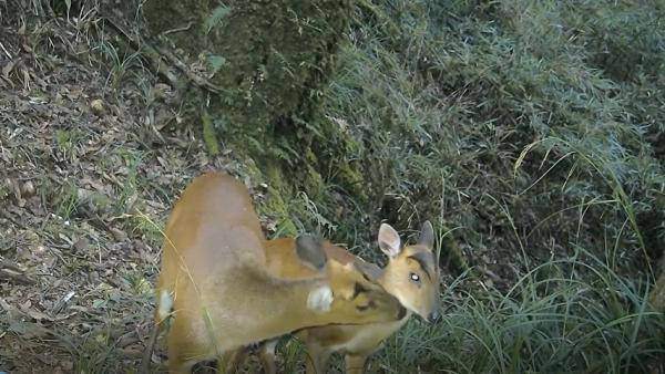云南哀牢山国家级自然保护区楚雄管护局林业专业技术人员整理红外相机影像资料时,发现赤麂母子同框活动的温馨视频。哀牢山自然保护区楚雄管护局 提供