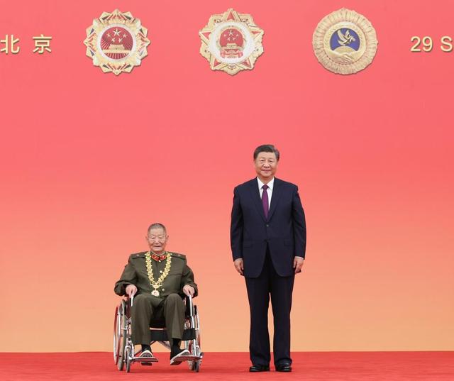 2024年9月29日,中华人民共和国国家勋章和国家荣誉称号颁授仪式在北京人民大会堂金色大厅隆重举行。习近平总书记向“共和国勋章”获得者黄宗德颁授勋章。新华社记者 鞠鹏 摄