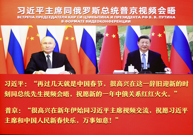 【本期导读】1月21日,中国国家主席习近平在北京同俄罗斯总统普京举行视频会晤,两国元首互致新年祝福。习近平强调,新的一年,我愿同总统先生一道,继续引领中俄关系登高望远,以中俄关系的稳定性和坚韧性应对外部环境的不确定性,共同促进两国发展振兴,维护国际公平正义。