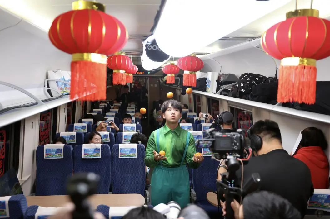 演出现场,20余家媒体记者登上列车,第一时间报道活动,及时呈现列车上的精彩节目、欢乐氛围,新媒体运用图文直播、短视频等形式,实时更新活动进展,开展互动交流,微博平台相关话题阅读量飙升,网友同步分享观看感受,不断推升网络热度。