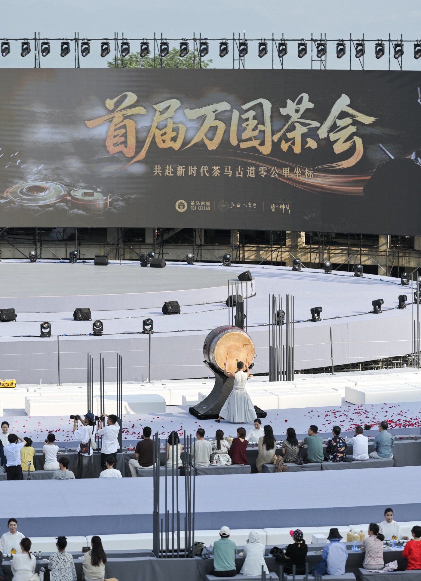 中国台湾“优人神鼓”联袂百位茶师,以鼓为魂、以茶为媒,突破传统茶会复刻唐宋的框架,共同打造沉浸式剧幕茶会,面向世界展现当代茶道美学。