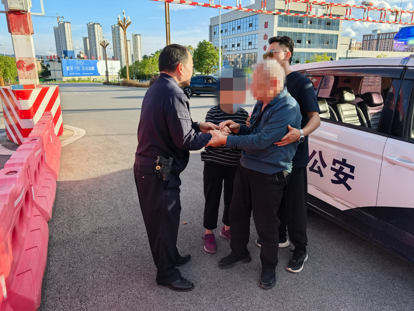 11月3日上午10时许,保山城区上空乌云密布,大雨倾盆。此时,在保山市公安局隆阳公安分局兰城派出所大门口却出现了3个身影:一名年轻男子扶着两名耄耋老人走进派出所值班室,将一面锦旗交到民警手中。