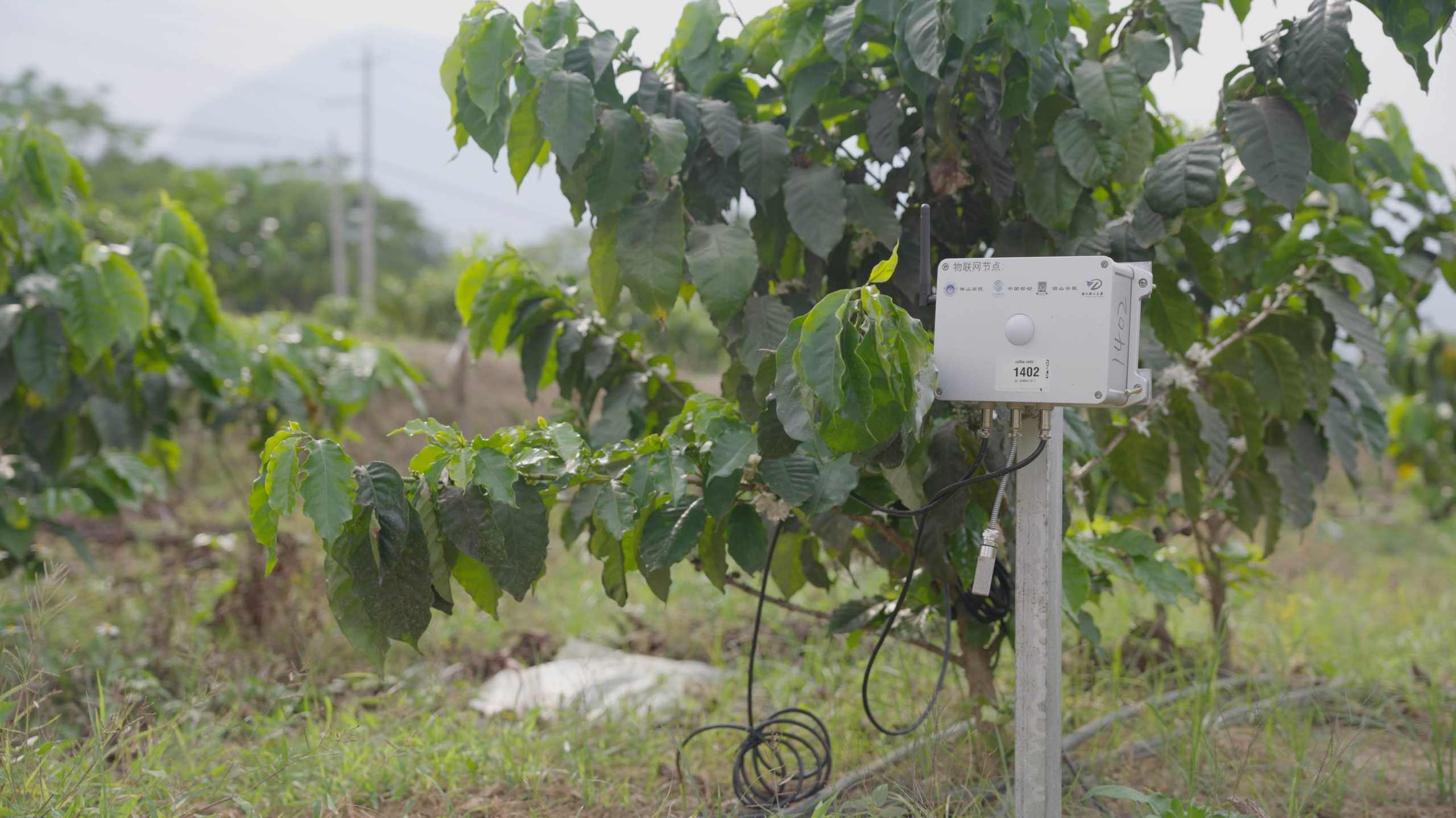 ▲潞江坝辛家山咖啡基地的中国移动“云智农链”监测节点